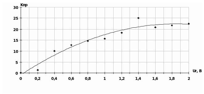 | Uпр, В | 0,21 | 0,55 | 0,85 | 1,05 | 1,3 | 1,5 | 1,6 | 1,75 | 1,85 | 1,95 |