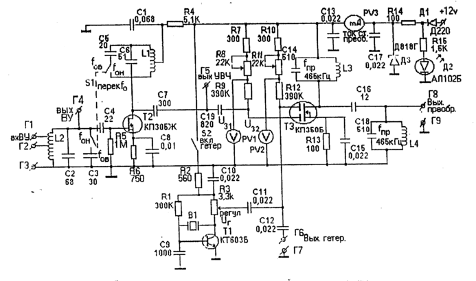 Рис. 2 Принципиальная схема преселектора и преобразователя частоты