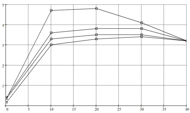 | Uвых | 0,63 | 1,05 | 1,47 | 2,1 | 1,47 | 1,05 | 0,63 |
