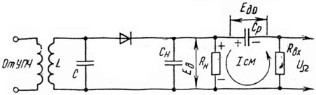 Из этих составляющих тока нелинейного элемента (НЭ) на сопротивлении нагрузки RH вызовут падение напряжения только низкочастотные компоненты, а высокочастотные составляющие шунтируются конденсатором С.