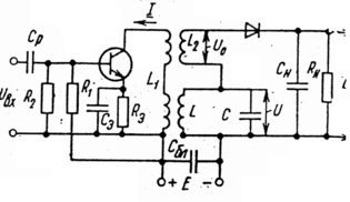 Высокочастотная составляющая тока диода VD1 протекает по цепи: VD1 CH1 CH2 общий провод CБЛ L1C1 CСВ L2C2 VD1. К диоду VD1 приложено: половина напряжения на втором контуре 0,5Ū2 и напряжение на первом контуре Ū1, т. е. ŪD1 = Ū1 + 0,5Ū2 . Напряжение Ū1 выделяется на дросселе Др, подключенном по высокой частоте параллельно первому контуру L1C1. Для того чтобы индуктивность дросселя Lдр не влияла на индуктивность первого контура, при ее выборе выполняется условия Lдр 10L1.