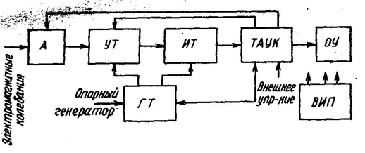 Гетеродинный тракт (ГТ) преобразует частоту собственного или внешнего опорного генератора и формирует сетки частот, необходимые для работы преобразователей частоты в УТ, следящих систем и устройств обработки сигнала в ИТ. Зачастую это сложное самостоятельное устройство – синтезатор частот (СЧ), обеспечивающий работу и других подсистем радиосистемы, прежде всего РПрУ.