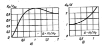 Рис. 3.13 – зависимость К0/К0с и dЭ /d от значения коэффициента связи a