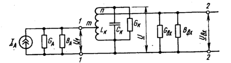 Здесь антенно-фидерная цепь представлена генератором тока İА = ĖА/ZА с проводимостями GА и BА, которые в общем случае включают в себя параметры элементов связи антенны с контуром