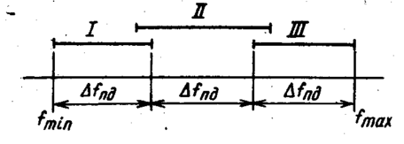 3.3.1 Постоянный частотный интервал поддиапазонов (рис. 3.7) – разность максимальной и минимальной частот у всех поддиапазонов одинакова: