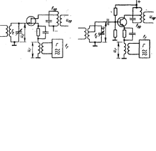 На рис.4.8 – схемы преобразователей с отдельным гетеродином на ПТ и БТ. В первой схеме напряжение сигнала подано в цепь затвора, а напряжение гетеродина – в цепь истока. По сигналу получается схема с общим истоком (ОИ), а для гетеродина – схема с общим затвором (03). Во второй схеме напряжение сигнала подается в цепь базы, а напряжение гетеродина – в цепь эмиттера. Этим достигается хорошая развязка цепей сигнала и гетеродина.