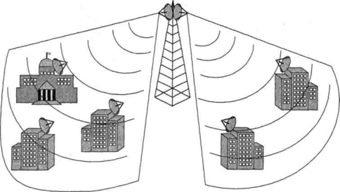 Спутниковая связь используется для организации высокоскоростных микроволновых протяженных линий. Так как для таких линий связи нужна прямая видимость, которую из-за кривизны Земли невозможно обеспечить на больших расстояниях, то спутник как отражатель сигнала является естественным решением этой проблемы (рис. 7).