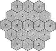 При гексагональной форме сот количество повторяемых частот может быть больше, чем 3, например 4, 7, 9, 12, 13 и т. д.