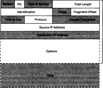 IP-адреса, записанные системой в поля Source IP Address и Destination IP Address заголовка IP, идентифицируют систему, создавшую пакет, и систему, которой он предназначен. Если пакет не покинет пределов ЛВС, целевой IP-адрес указывает на ту же систему, что и целевой адрес в заголовке протокола канального уровня. Если пакет адресован системе в другой сети, целевые адреса протоколов сетевого и канального уровней различаются. IP — сквозной протокол, т. е. он полностью отвечает за доставку данных целевой системе, не ограничиваясь их перемещением по локальной сети, как протокол канального уровня.