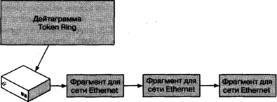 Маршрутизатор способен соединять сети с различными сетевыми средами и протоколами канального уровня, но, чтобы направить пакеты из одной сети в другую, ему часто приходится переупаковывать дейтаграмму в другой кадр канального уровня. Иногда это выливается в удаление старого кадра и создание нового. В других случаях протоколы канального уровня различаются настолько сильно, что процесс переупаковки усложняется, как, например, при соединении сети Token Ring с сетью Ethernet. Дело в том, что в сети Token Ring дейтаграмма может иметь длину до 4500 байтов, а в сети Ethernet — не более 1500 байтов.