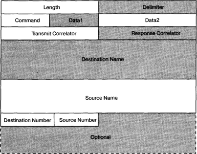 • Delimiter (2 байта) — информирует принимающую систему, что сообщение должно быть доставлено интерфейсу NetBIOS.