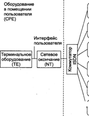 Одним из базовых принципов ISDN является предоставление пользователю стандартного интерфейса, с помощью которого пользователь может запрашивать у сети разнообразные услуги. Этот интерфейс образуется между двумя типами оборудования, устанавливаемого в помещении пользователя (Customer Premises Equipment, CPE):