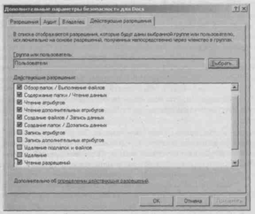 Рис. 5 Вкладка Действующие разрешения диалогового окна Дополнительные параметры безопасности
