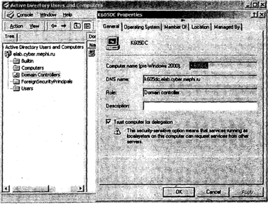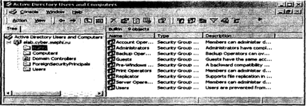 Создание новых объектов компьютеров, выполняющих разные роли в домене, возможно с помощью оснастки Active Directory Users and Groups (рис.10).