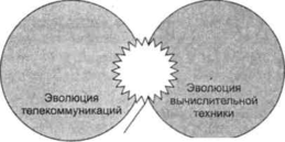 Рис. 1 Эволюция компьютерных сетей на стыке вычислительной техники и телекоммуникационных технологий