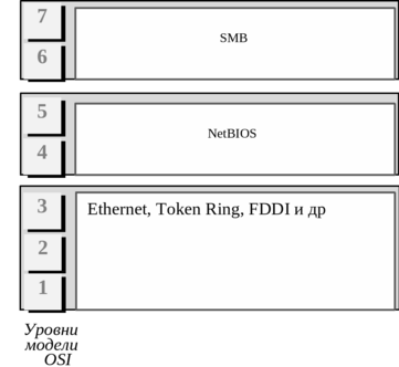 Протокол Server Message Block (SMB) поддерживает функции сеансового уровня, уровня представления и прикладного уровня. На основе SMB реализуется файловая служба, а также службы печати и передачи сообщений между приложениями.