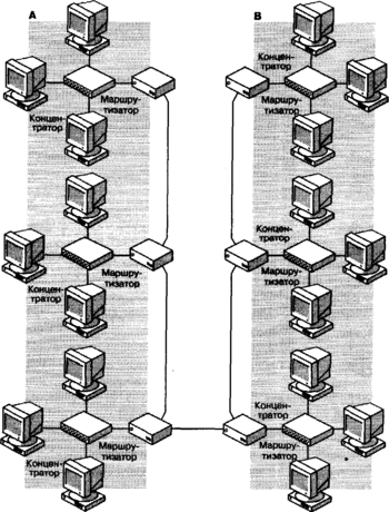 Большинство людей считает маршрутизатор большим сложным устройством стоимостью в десятки или сотни тысяч долларов, применяемым только в гигантских корпоративных сетях. На самом же деле маршрутизаторы бывают разные, и используются они гораздо чаще, чем можно себе представить. Конечно, среди них действительно много крупных, мощных, дорогостоящих моделей, и вообще маршрутизаторы дороже коммутаторов, мостов и концентраторов. Маршрутизаторы действительно часто применяются в больших корпоративных сетях, где их устанавливают в специальных стойках и информационных центрах. Такие маршрутизаторы связывают сегменты с магистралью и обеспечивают всей интерсети доступ к компьютерам в филиалах компании и к Интернету.