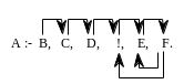 Если подцель "E,F" - неуспешна, бектрекинг попадает на "!", и вся цель A - неуспешна.