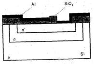 На рис. 6.2 приведена схема МДП-транзистора, используемого в качестве резистора. Структура МДП-конденсатора показана на рис. 6.3. Диэлектриком в этом конденсаторе является термически выращенная пленка диоксида кремния SiO2. Одним из электродов является пленка напыленного металла на SiO2, являющимся диэлектриком, другим — сильнолегированная n+-область кремния, лежащая под оксидом. Высокоомный n-слой и