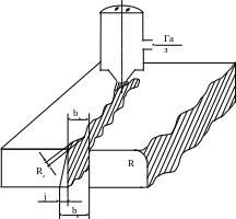 Качество реза определяют следующие показатели (рис.2): точность, шероховатость Rz , неперпендикулярность (клиновидность) j, протяженность зоны термического влияния, ширина реза b, количество грата (наплывы на нижней кромке разрезаемого металла).