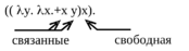 Во внутреннем -выражении аргумент х имеет одинаковое имя ссо связанной переменной в теле абстракции.
