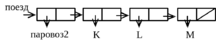 В этом примере в качестве побочного эффекта функции setq является представление символа 'список' как указателя списка (штриховая стрелка). Перечеркнутое поле обозначает пустую ссылку, т е указатель ссылается на атом NIL.