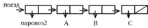 Для сравнения структура для списка (А В) будет выглядеть иначе:
