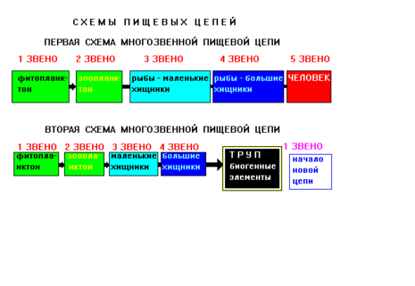 Рассмотрим различные схемы многозвенных пищевых цепей.