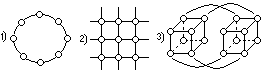 3. Гипер куб. Одноименные вершины объединяются связями между собой. Характеризуется характерным соотношением числа связей Log2N.