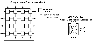 Они дополняются памятью и процессорами, реализующими связные ф-ции и затем получившиеся вычислительные модули связывают между собой различными способами (но не кольцо). Любая передача данных запускает подпрограмму передачи (поиск процессора, передача данных, проверка правильности передачи) и сильные связи по данным практически «останавливают» такие с-мы.