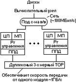 спользовались процессоры Alpha 21164 – RISC процессор, супер скалярный (т.е. имел нес-ко АЛУ независимых друг от друга и в результате за один такт выполнялось 4 команды), двух уровневую КЭШ память (1-ый уровень на процессоре 8К для команд и 8К для данных. А рядом с процессором был отдельный чип со 100 КБ общей памяти плюс модуль ОП до 1 ГБ). Максимально мог содержать до 1000 процессоров Alpha. ППД – процессор передачи данных.