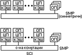 Если пользователя устраивает число процессоров не <8 то имеет смысл устраивать СМП с-мы или мультипроцессорные с-мы, если больше процессоров, то это мульти компьютер.