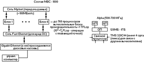 Все сети стандартные. Вычислительные блоки построены на вычислителях. Состав вычислителя Alpha (500-700 МГц) показан на рисунке.