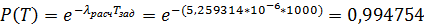 Рассчитывается вероятность безотказной работы для заданной средней наработки на отказ, которая составляет Тзад=1000 часов и рассчитывается по формуле [32].