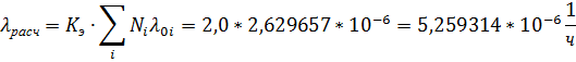 | Тип элемента | Обозначение элементов на схеме | Число элементов Ni,шт | λ0 *10-6, 1/ч | N*λ0 *10-6, 1/ч |