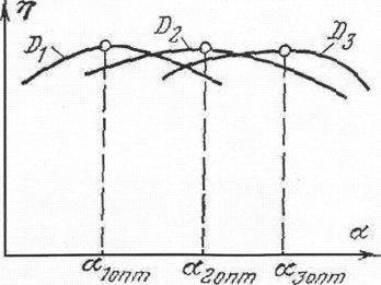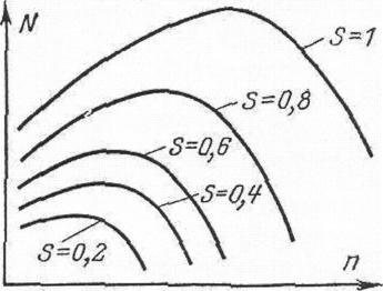 В системе координат мощность N частота вращения двигателя n построены статические характеристики двигателя для различных степеней открытия S дросселя. Характеристики показывают, что мощность двигателя N изменяется с изменением частоты вращения, достигая при некотором значении попт максимума. Наивыгоднейшая частота вращения попт зависит от степени дросселирования. Поэтому при каждом изменении положения дроссельной заслонки оптимальный режим работы двигателя (максимум мощности) достигается при соответствующем