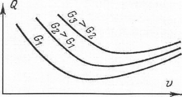 При эксплуатации самолетов возникает задача обеспечить максимальную дальность полета при заданном запасе топлива. Зависимость километрового расхода Q топлива от скорости полета и для различных полетных весов G также имеет экстремальный характер (рисунок 1.8).