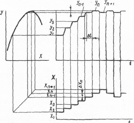 х, затем во время переходного процесса или после его окончания обрабатывается информация о соответствующем изменении функции у. В простейшем случае, обработка информации заключается в определении после каждого шага знака изменения функции у.