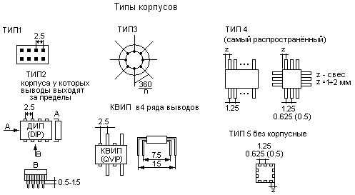Корпуса м/с. Корпуса м/с и технические характеристики. ГОСТ 17467-79 – устанавливается тип корпусов, выводов.