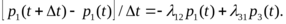 . Рассуждая аналогично, получим систему дифференциальных уравнений, называемых уравнениями Колмогорова. Интегрирование этих уравнений даст искомые вероятности состояний как функции времени. Начальные условия должны быть заданы: если в момент t = 0 система находилась в состоянии