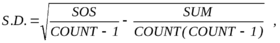 где SOS — сумма квадратов значений аргументов, COUNT — число входов в таблицу, SUM — квадрат суммы значений аргументов таблицы.