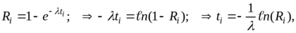 где выражение 1-Ri заменено на Ri, т.к. одно случайное число заменяется другим, Ri (0, 1).