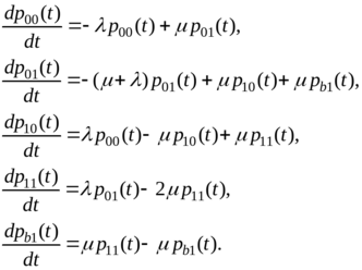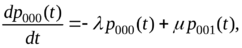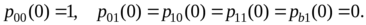 Для интегрирования системы (1.2) будем задавать естественные начальные условия, т.е. такие, когда в начальный момент времени, равный нулю вероятность отсутствия требований в системе равна единице, а остальные вероятности в начальный момент времени равны нулю: