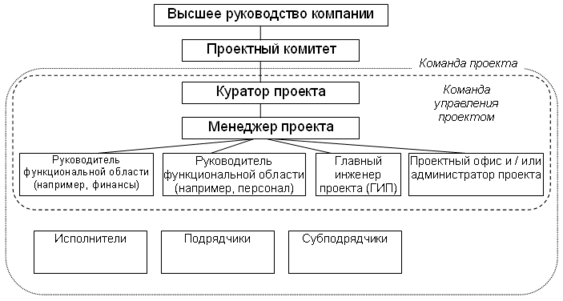 Следует обратить внимание, что независимо от выбранного типа организационной структуры проекта непосредственный контакт с заказчиком осуществляется через менеджера проекта. При этом взаимодействие и скорость реакции на запросы потребителя резко повышаются, если за успех проекта отвечает один человек.