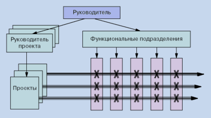 Когда проектная организация принимает боле постоянную форму, она обычно называется организацией с матричной структурой управления проектами. Такую структуру можно использовать, когда фирма вынуждена постоянно реагировать на внешние давления. Бывает, что матричная структура позволяет фирме быстрее ориентироваться в меняющейся обстановке при поддержании постоянной работы и компетентности в функциональной области.