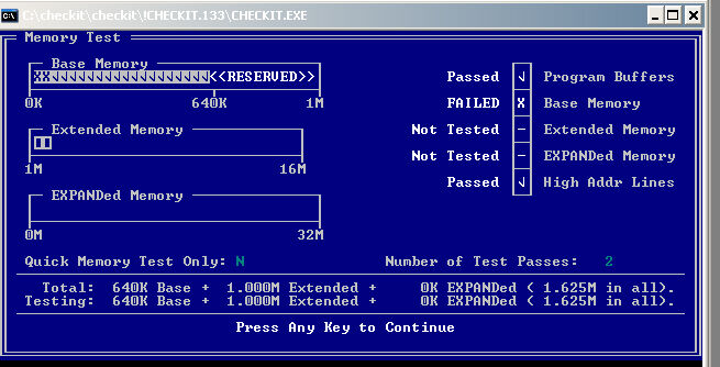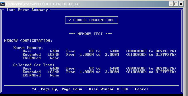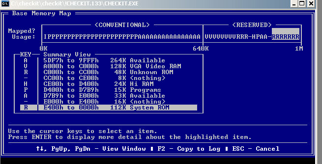 | H | Верхняя память. CheckIt обнаружил наличие блока памяти в области зарезервированной памяти, но не может определить как она используется |