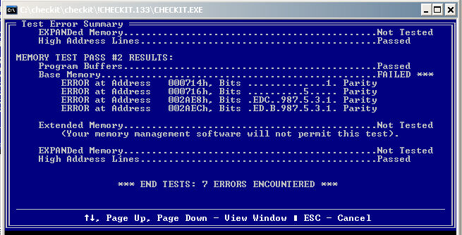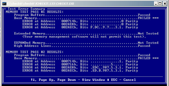 Виды кодов, используемых при проверке памяти в «Checkit».