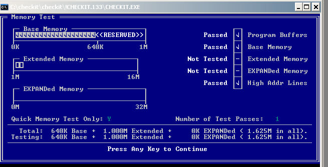 Физическая память от 1 Мб может одновременно трактоваться как расширенная, так и дополнительная. Суть различия дополнительной и расширенной памяти состоит в методах адресации. Если отсутствует расширенная или дополнительная память, то соответствующие команды меню блокируются.
