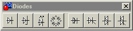 2.1. Строка основных групп компонентов схем. Группы компонентов вызываются однократным нажатием левой кнопки мыши на клавишу в окне.
