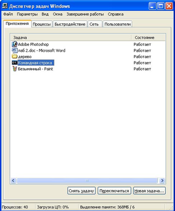 переключимся в Диспетчер задач. Откроем его вкладку Приложения.